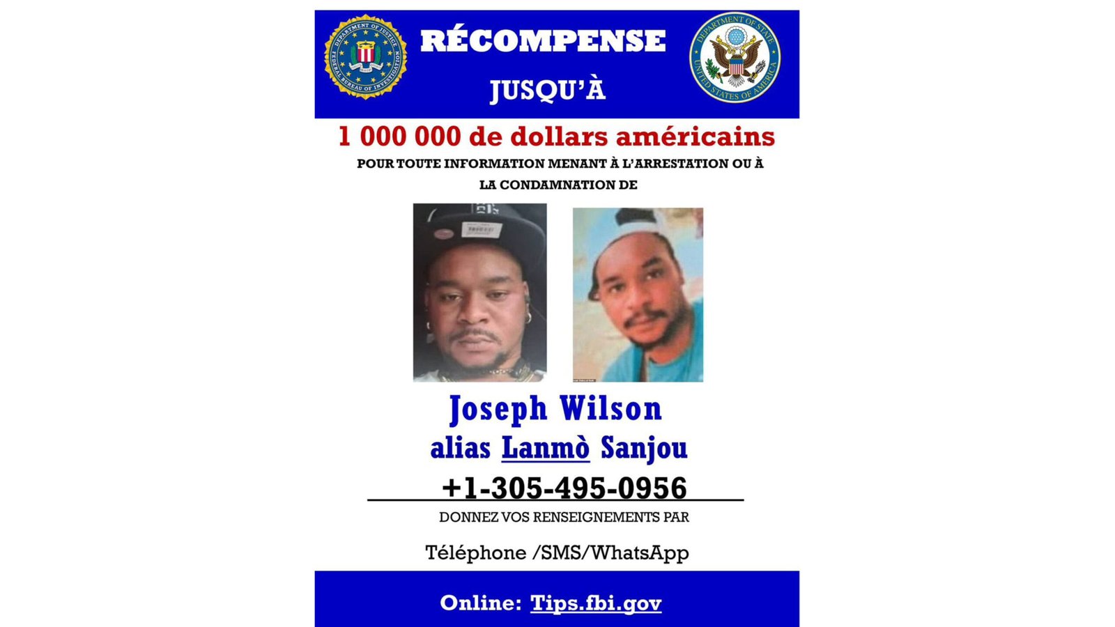 Dans un contexte de violence croissante, le gouvernement américain a annoncé vendredi 4 octobre une récompense pouvant aller jusqu’à 1 000 000 de dollars américains pour toute information conduisant à l’arrestation ou à la condamnation de Joseph Wilson, le chef du gang des 400 Mawozo, connu sous le nom de « Lanmò Sanjou ». Ce dernier est soupçonné d’être l’un des principaux acteurs des enlèvements, tortures et meurtres qui ravagent le pays.